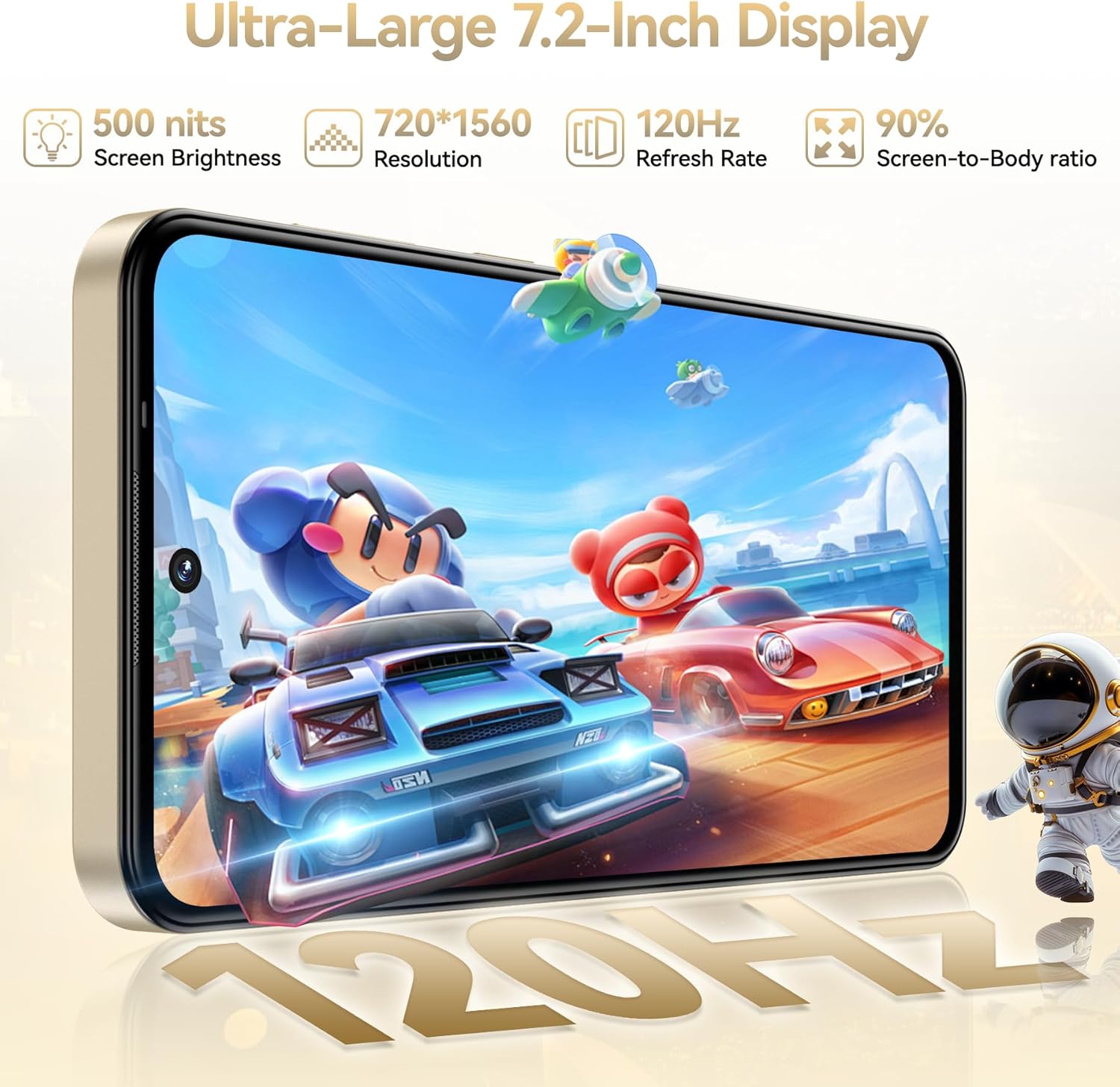 The OUKITEL C69 features a stunning 7.2-inch display with a 120Hz refresh rate, making it ideal for gaming, video streaming, and other graphics-intensive activities. The screen’s 500 nits of brightness ensure that content remains clearly visible even under direct sunlight. The phone’s design is sleek and modern, with a sturdy build that exudes premium quality.